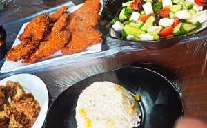 يقدم بجانبه رز ابيض بالذرة أو بطاطس محمرة مع المخللات و السلطة